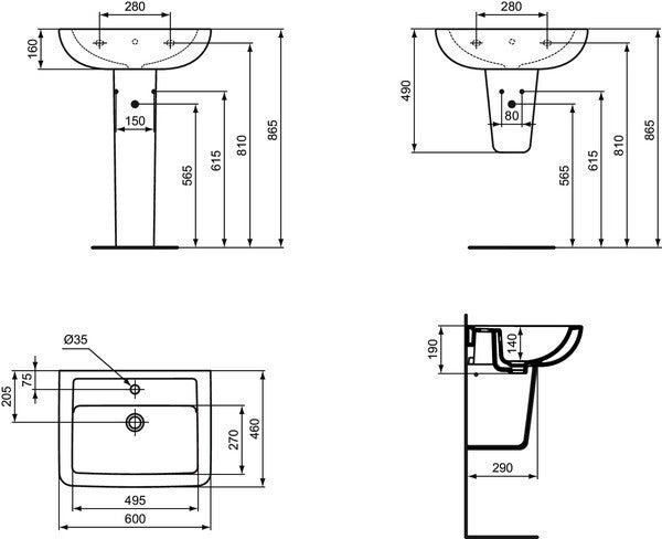 Waschtisch Eurovit-Plus 60cm eckig weiss Ideal Standard